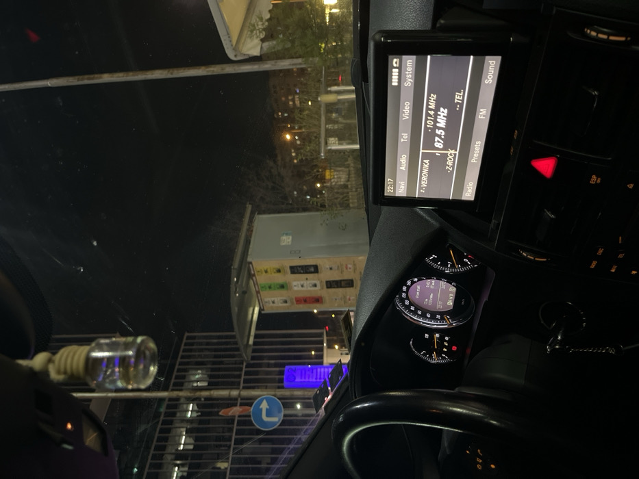 - "The image presents a nighttime view from inside a stationary Mercedes-Benz C-Class (W204 model), with the dashboard and windshield visible" by FM-Zm7Dq1, licensed under CC BY 4.0