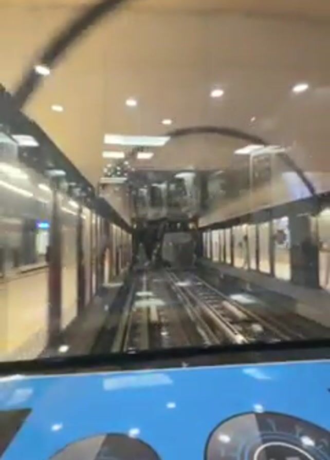 The camera is positioned inside what appears to be the cabin of an automated train or transportation system