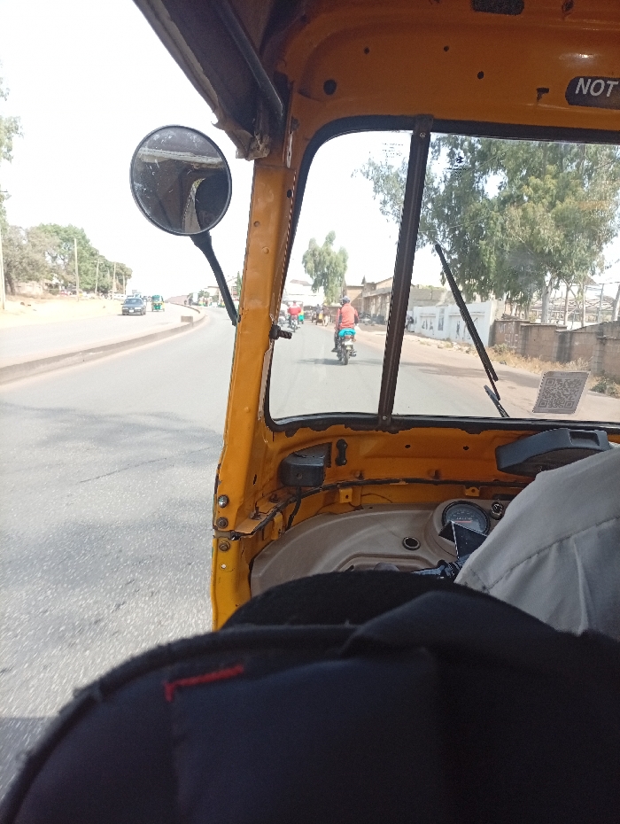 - "The image depicts a street scene in Jos, Nigeria, viewed from inside a yellow Keke Napep (auto-rickshaw)" by FM-LLgxz1, licensed under CC BY 4.0