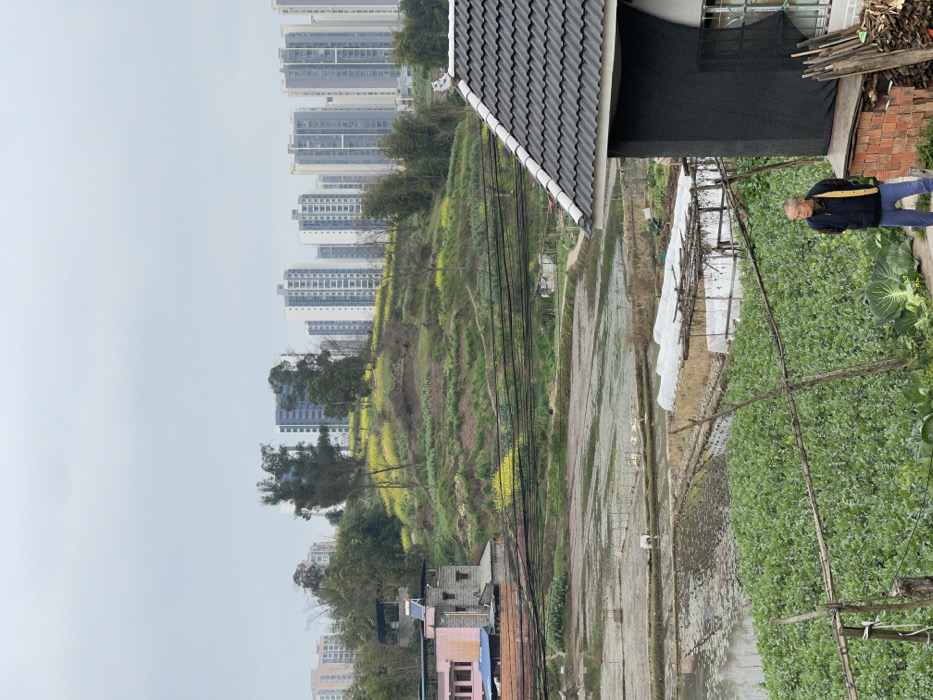 - "This image depicts a transitional landscape in Bishan, China, characterized by rural agricultural areas juxtaposed against urban development under an overcast, light gray sky" by FM-QQglM2, licensed under CC BY 4.0