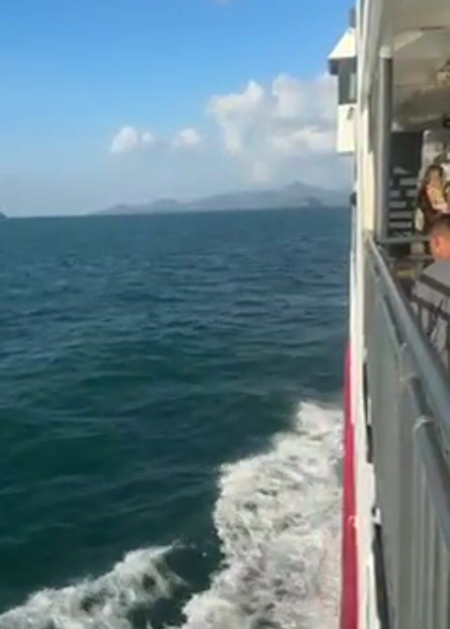 The video appears to be shot from aboard a ferry or boat moving through water