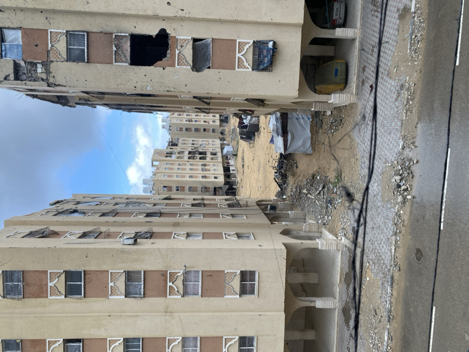 - "This image depicts a heavily damaged urban residential area in Khan Yunis, Palestinian Territory, under an overcast sky" by FM-GOCB12, licensed under CC BY 4.0