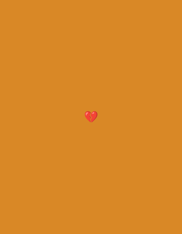 A burnt orange background is sparsely decorated with a single red broken heart emoji