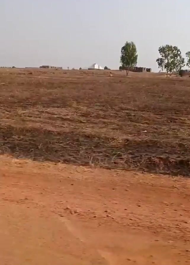 rural landscape with a dry, harvested field and sparse vegetation