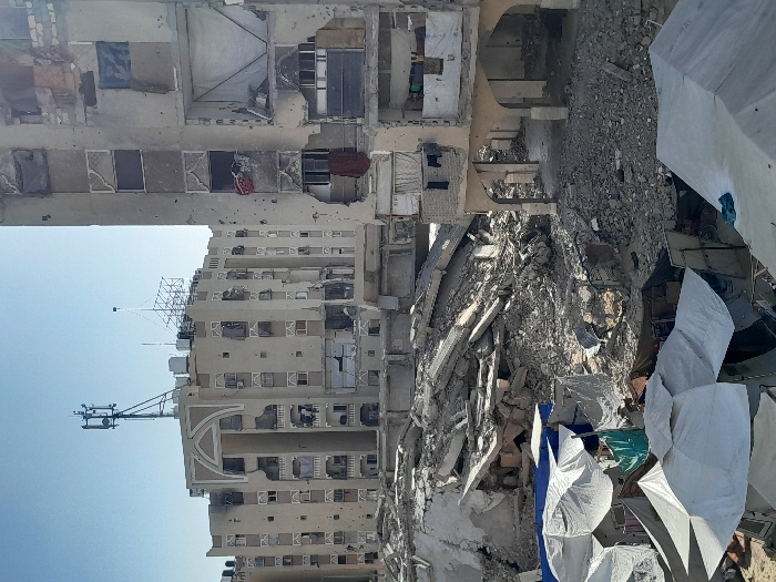 - "The image depicts a devastated urban environment in Khan Yunis, Palestinian Territory, under a clear blue sky" by FM-V8KrL2, licensed under CC BY 4.0