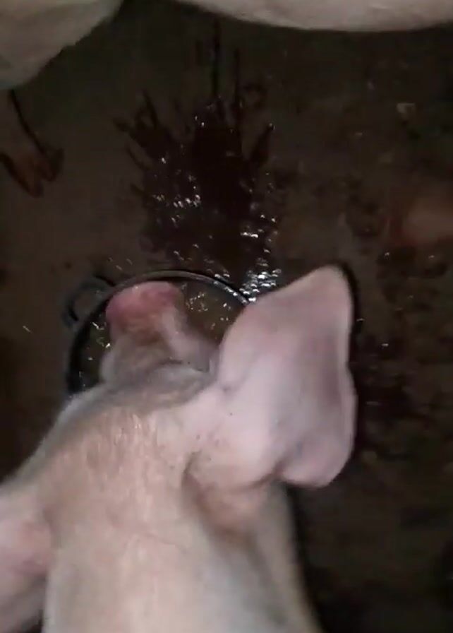 - ". The video shows a pig drinking water out of a silver bucket. The pig is pink with floppy ears. The ground of the pigpen is wet with water and mud. There is another pig in the background, partially obscured. The cage surrounding the pig is visible on the left. The "Infinix SMART 8" watermark is visible in the bottom left corner." by FM-smD6y2, licensed under CC BY 4.0