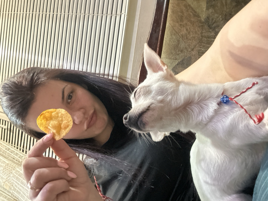 - "An indoor scene, likely in Sliven, Bulgaria, depicts a female subject and a small white dog" by FM-GIf9Q2, licensed under CC BY 4.0