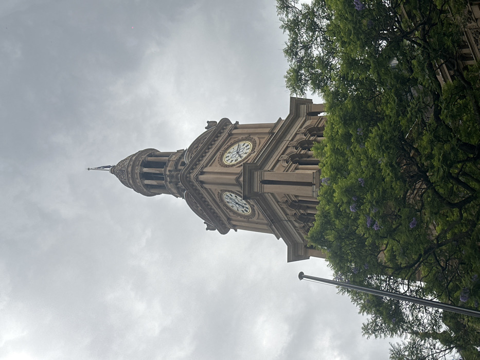 - "The image presents a low-angle view of the clock tower of Sydney Town Hall, located on George Street in Sydney, Australia" by FM-P0ePn2, licensed under CC BY 4.0
