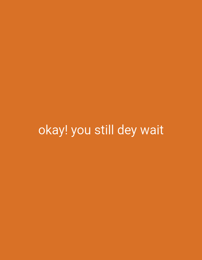 The image displays the text "okay! you still dey wait" in white lettering centered against a solid, burnt orange background