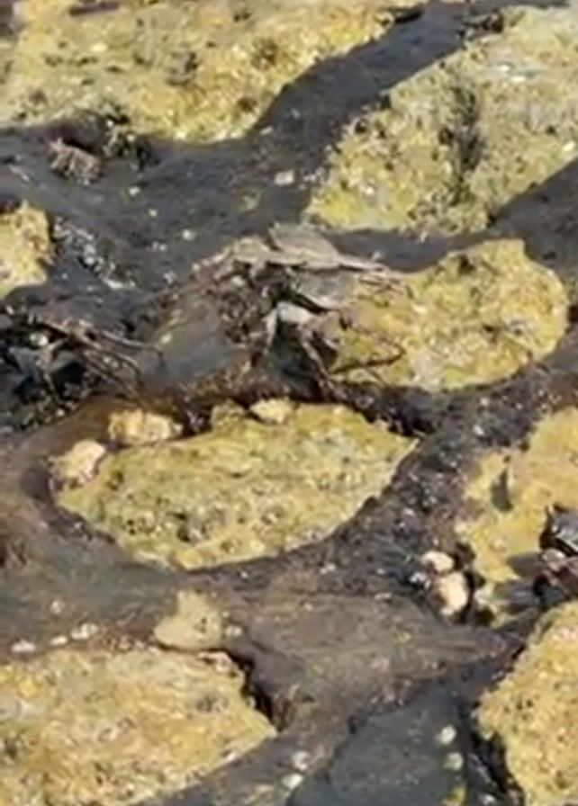 rocky area with several crabs moving around