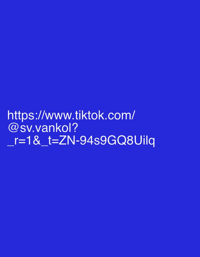 The image consists of white text displayed against a solid, uniform blue background. The text is centered horizontally in the lower portion of the frame and reads: "https://www.tiktok.com/@sv.vankol?_r=1&_t=ZN-94s9GQ8Uilq". No people, physical objects, actions, or environmental elements are depicted. The scene provides no visual information to identify a specific location within the city of Stozher, Bulgaria, or any other geographical area.