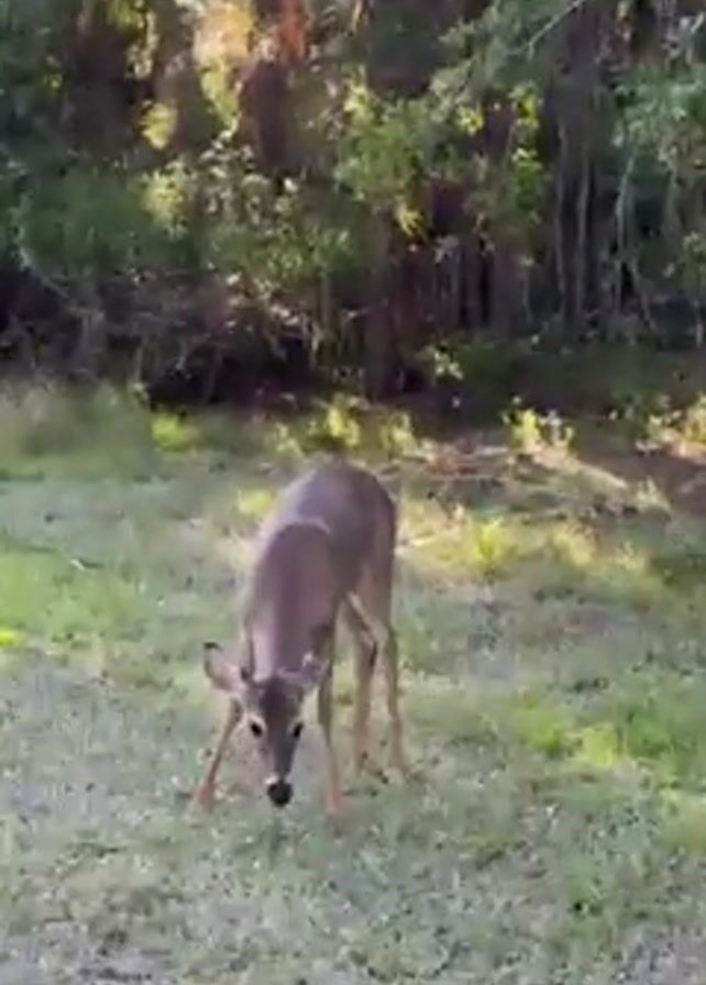 - "deer standing on a grassy lawn in front of a wooded area" by FM-8YX5o2, licensed under CC BY 4.0