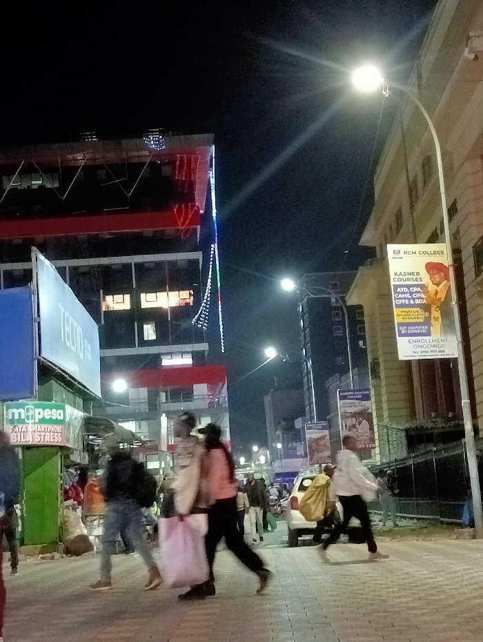 - "This image depicts a nighttime street scene in the Central Business District (CBD) of Nairobi, Kenya" by FM-UOcwd2, licensed under CC BY 4.0