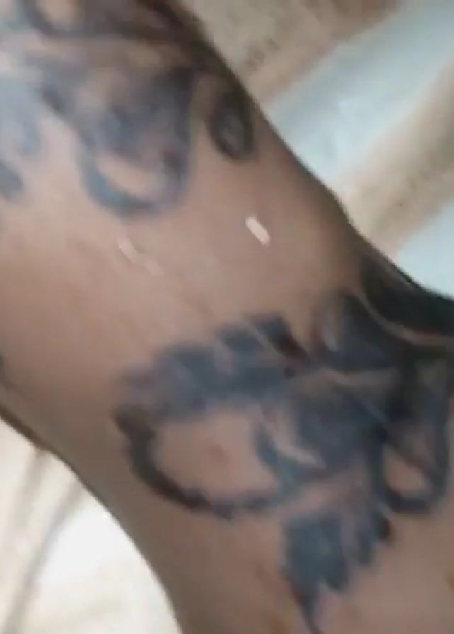 A close-up shot displays a dark-skinned person's left arm and hand adorned with an intricate, dark henna design
