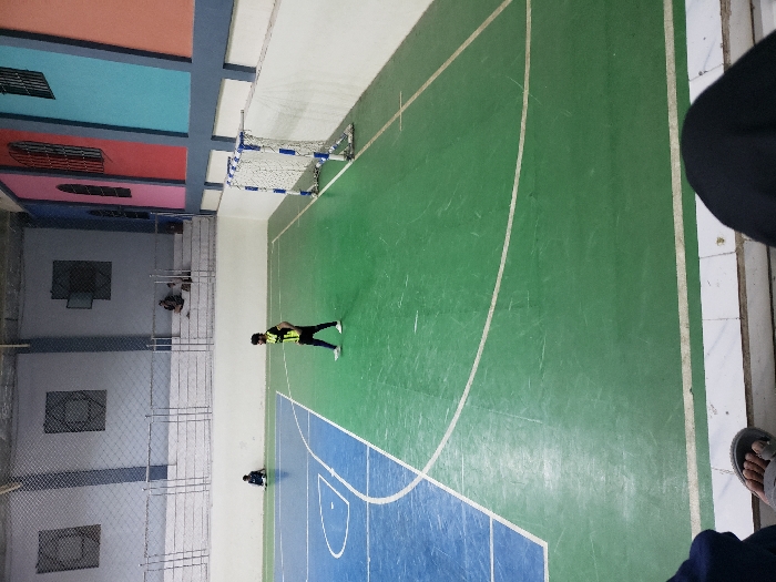 - "A gymnasium with a green and blue court" by FM-NRl2w1, licensed under CC BY 4.0