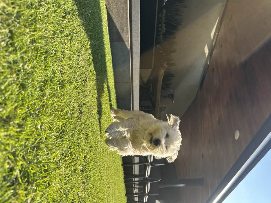 - "A small, white dog is running on a lush green lawn" by FM-4n9953, licensed under CC BY 4.0
