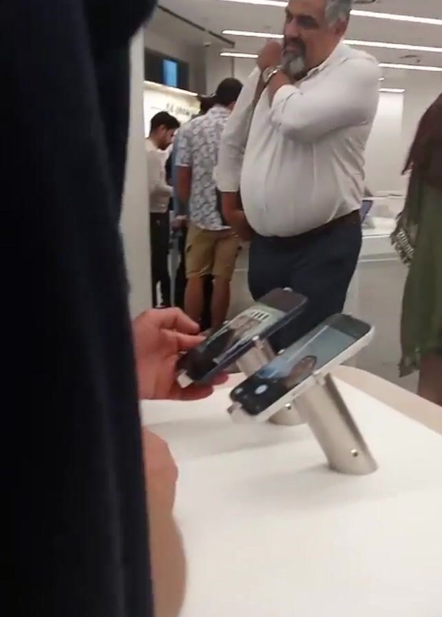 - "group of people in a brightly lit store with white tables displaying cell phones on stands" by FM-Luk4a2, licensed under CC BY 4.0