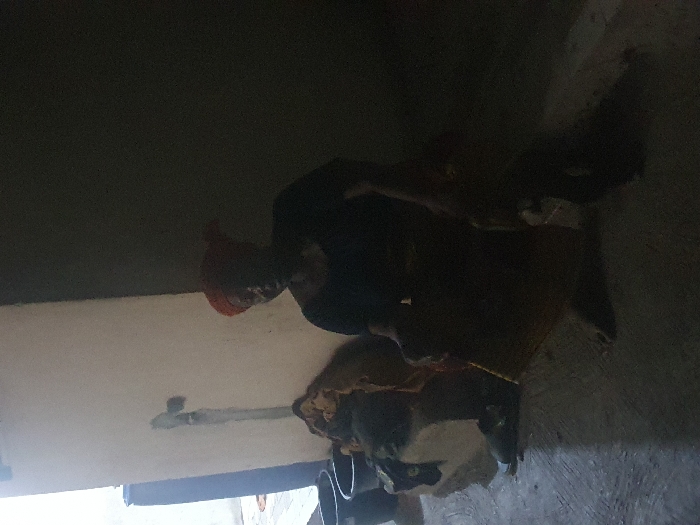 - "A person wearing a red turban and dark clothing holds a black and white goat in a dimly lit room" by FM-V3gKq1, licensed under CC BY 4.0