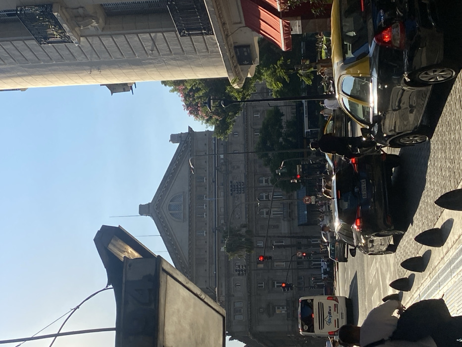 - "An urban street scene features a light-colored building dominating the background with a peaked roof and symmetrical window design" by FM-3JGJd2, licensed under CC BY 4.0
