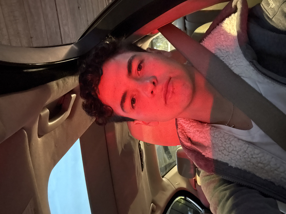 - "A young man with curly hair sits in a car, illuminated by a red light" by FM-R2V9y1, licensed under CC BY 4.0