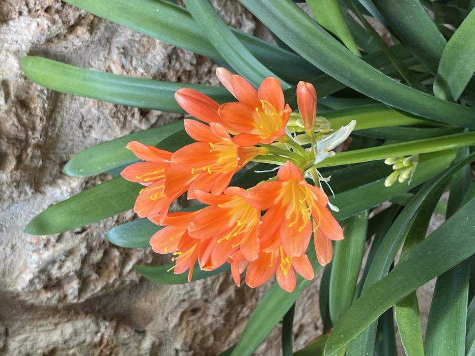 - "The scene, located in Fornalutx, Spain, depicts a Clivia plant in bloom positioned against a stone wall" by FM-Gp7zE3, licensed under CC BY 4.0