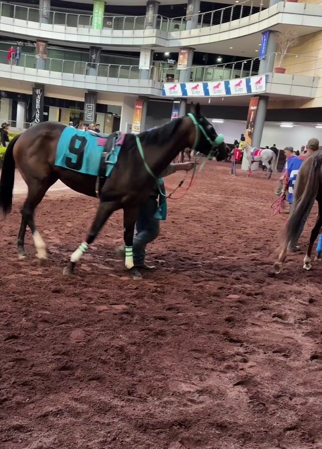 - "several race horses being walked around a dirt track inside a multi-level building that appears to be a shopping mall" by FM-nKu5C3, licensed under CC BY 4.0