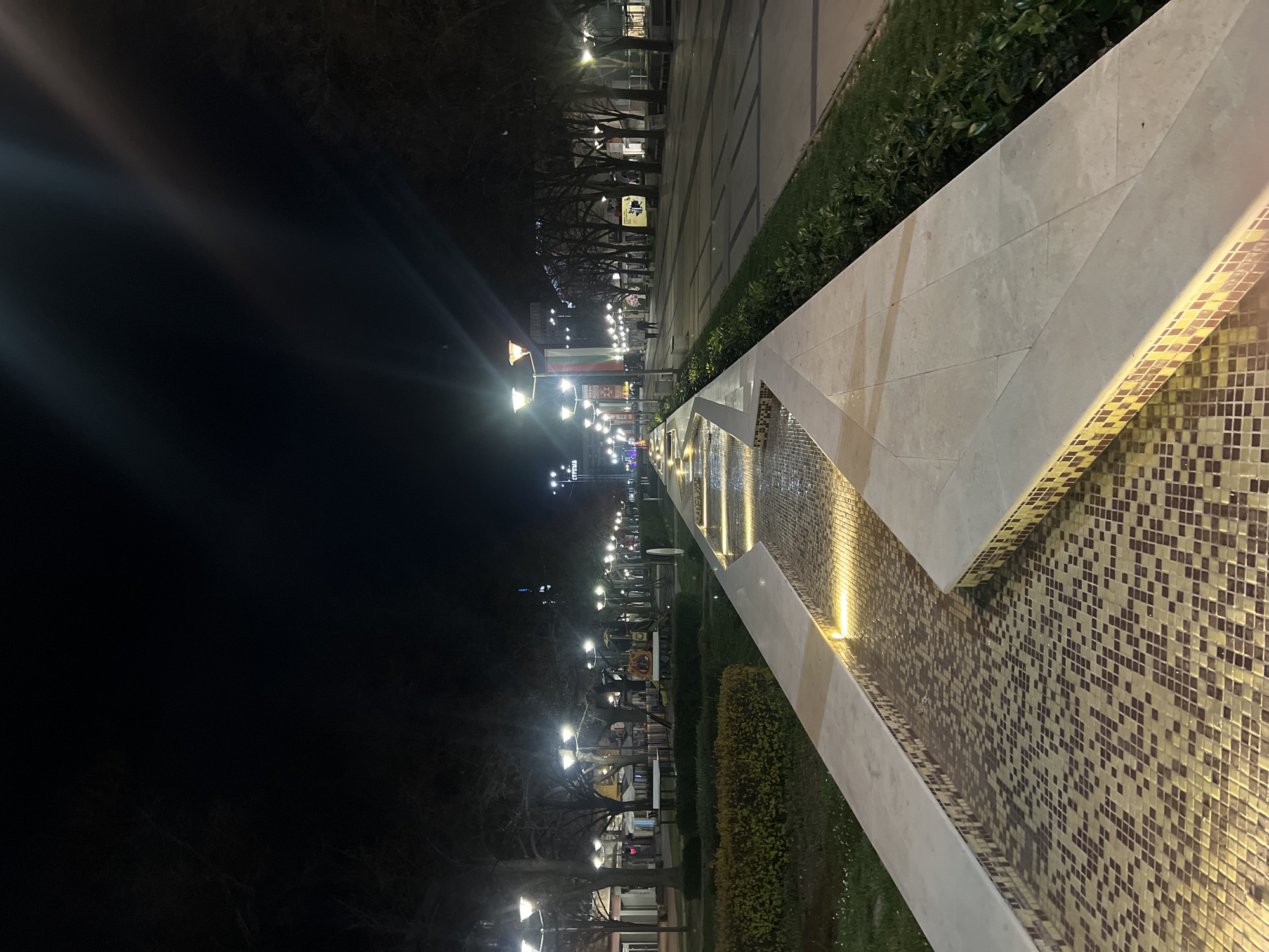 A nighttime view of the main pedestrian street in Pernik, Bulgaria