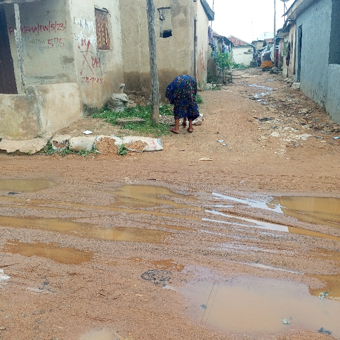 This image depicts a residential street in Iddo Tudunwada, Nigeria