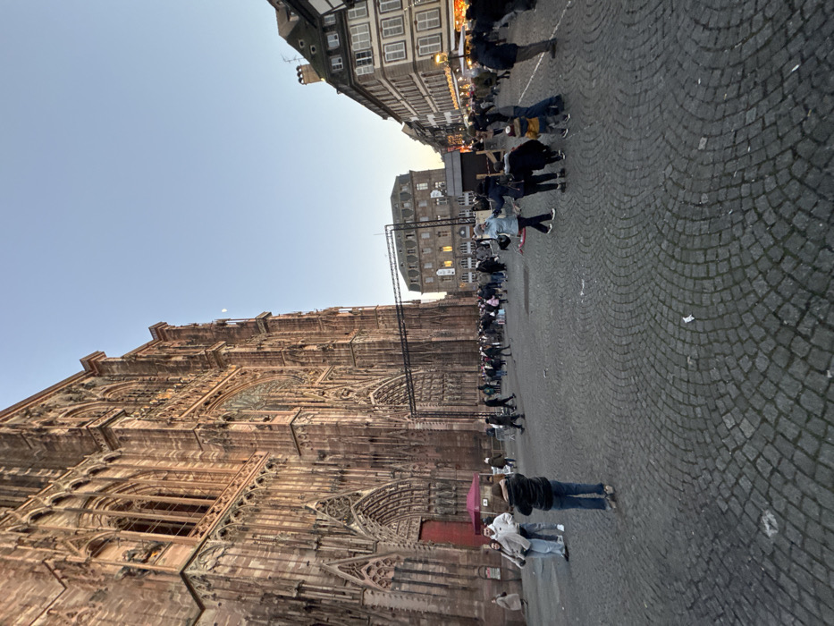 - "The image depicts a public square in Strasbourg, France, specifically the Place de la Cathédrale, with the Cathédrale Notre-Dame de Strasbourg dominating the left side of the frame" by FM-u1gX93, licensed under CC BY 4.0
