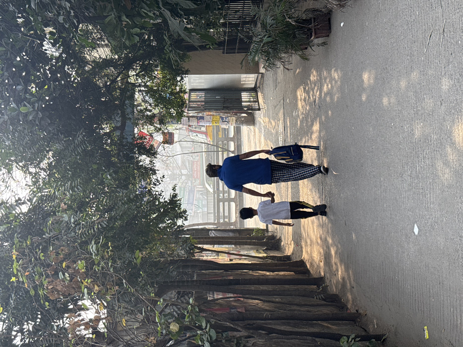 - "An outdoor scene in Dhaka, Bangladesh, depicts a male adult and a child walking away from the camera on a sun-dappled concrete pathway" by FM-Infr12, licensed under CC BY 4.0