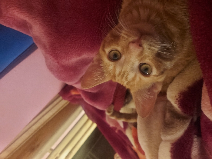 - "This image, located in M'diq, Morocco, displays an orange tabby cat positioned amongst blankets" by FM-pNPMj1, licensed under CC BY 4.0