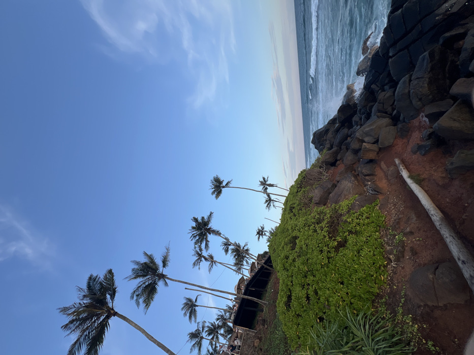The image depicts a coastal scene in Thalaramba, Sri Lanka, observed from a low angle