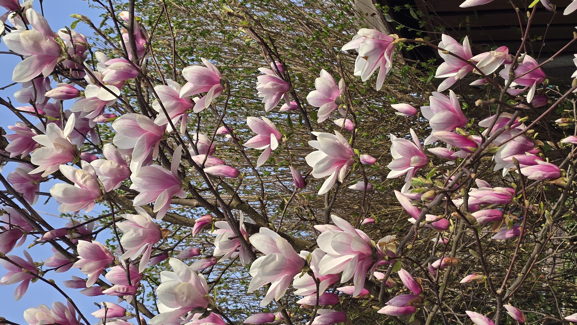 - "The image displays a close-up, vertical shot of a magnolia tree in full bloom, located in Ljubljana, Slovenia" by FM-OXDrT2, licensed under CC BY 4.0