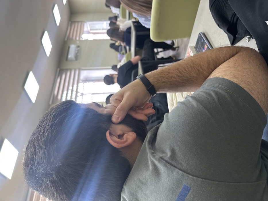 The image depicts a classroom or lecture hall in Yerevan, Armenia, captured from the perspective of a seated individual