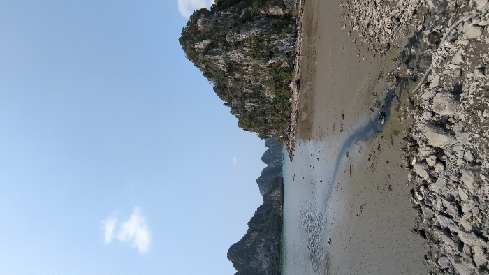 - "The image displays a coastal scene in Ha Long Bay, Ha Long Ward, Vietnam, under a bright, clear light blue sky with a single small white cumulus cloud visible in the upper left" by FM-ceqQJ3, licensed under CC BY 4.0
