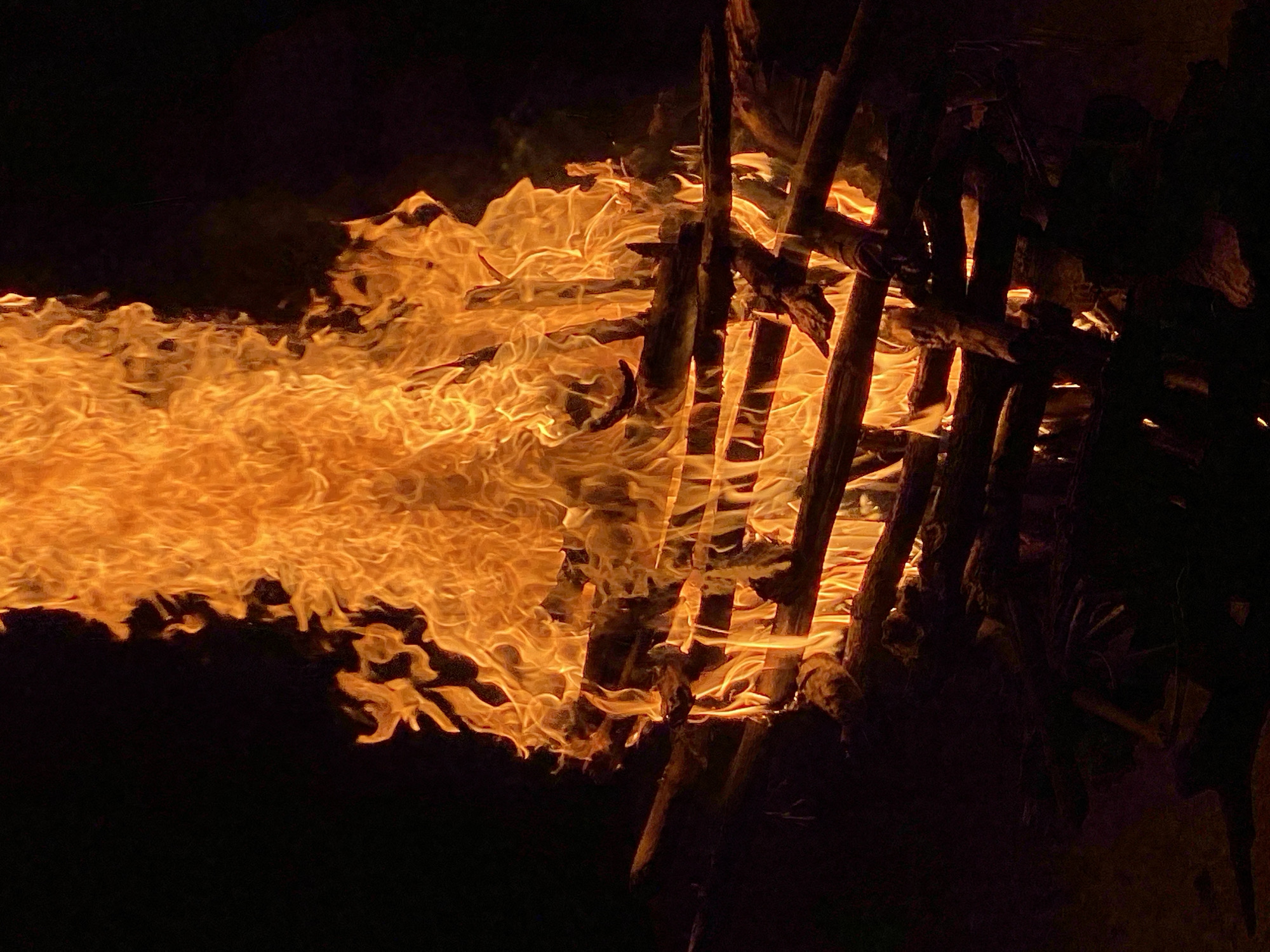 - "A bonfire consisting of sticks and wood is burning brightly against a dark backdrop" by FM-kBA5V2, licensed under CC BY 4.0