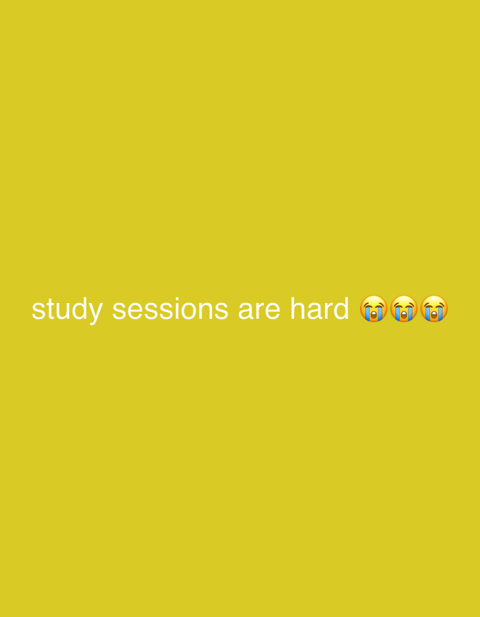 This digital graphic features a uniform, solid yellow background. Centered horizontally in the lower middle third of the frame is white, sans-serif text reading "study sessions are hard," immediately followed by three crying face emojis (😭). No individuals, physical subjects, objects, specific actions, interactions, or discernible physical environment are depicted. The content is purely textual and symbolic against an abstract background. This image is contextualized within the city of València, Spain.