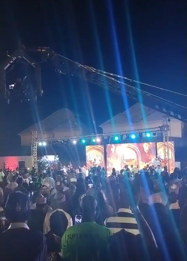 The video depicts a large crowd gathered at night to watch a stage performance