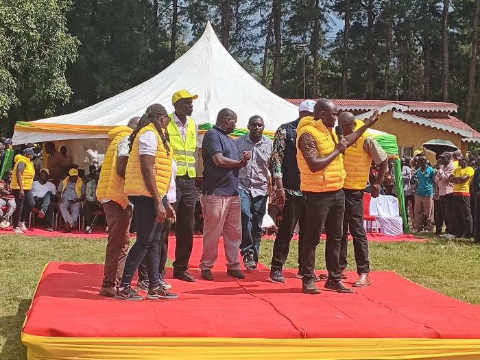 The image displays an outdoor public gathering in West Kabras ward, Kenya, likely a political event