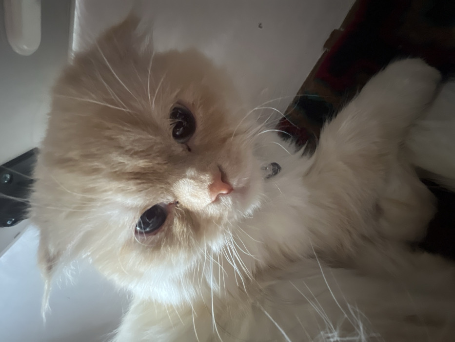 - "A long-haired domestic cat, predominantly cream-colored with white undertones, occupies the majority of the frame" by FM-RkAm93, licensed under CC BY 4.0
