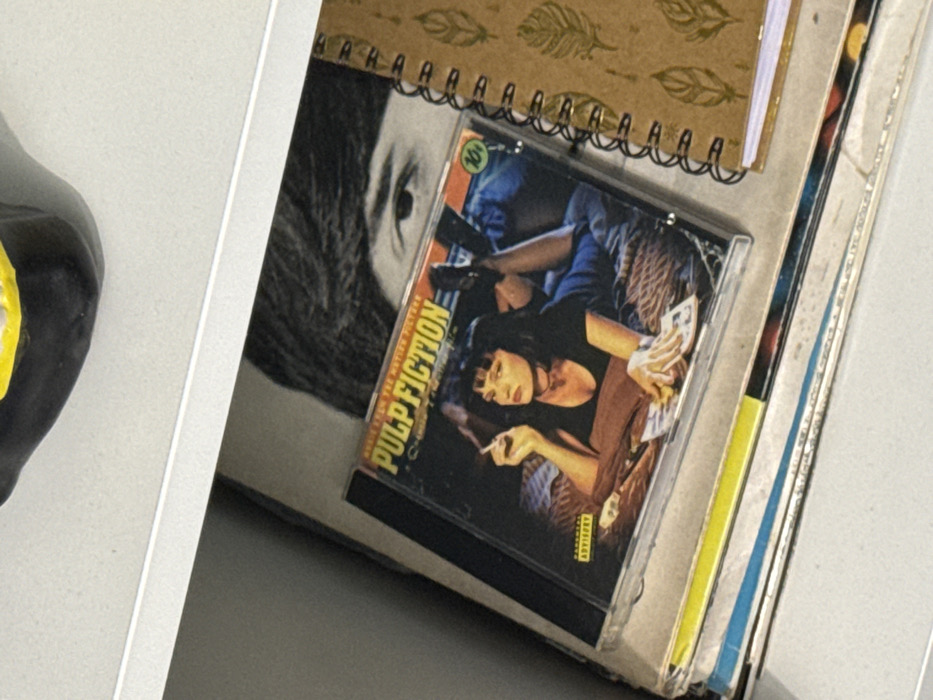 - "The image depicts a "Pulp Fiction" music album or film DVD/Blu-ray jewel case resting on a stack of media items within an indoor setting" by FM-WTNcz2, licensed under CC BY 4.0