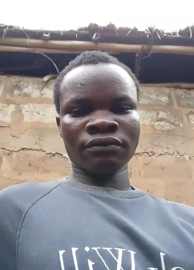 A man with short, dark hair is looking directly at the camera. He is wearing a dark gray crewneck sweatshirt with the word "JACK WILLS" printed in white capital letters on the front. The background is a roughly constructed, possibly unfinished, brick or clay wall with a partially visible thatched roof above it. The lighting is overcast, and the camera angle is slightly from below the man. He is still, with no apparent action or interaction taking place.