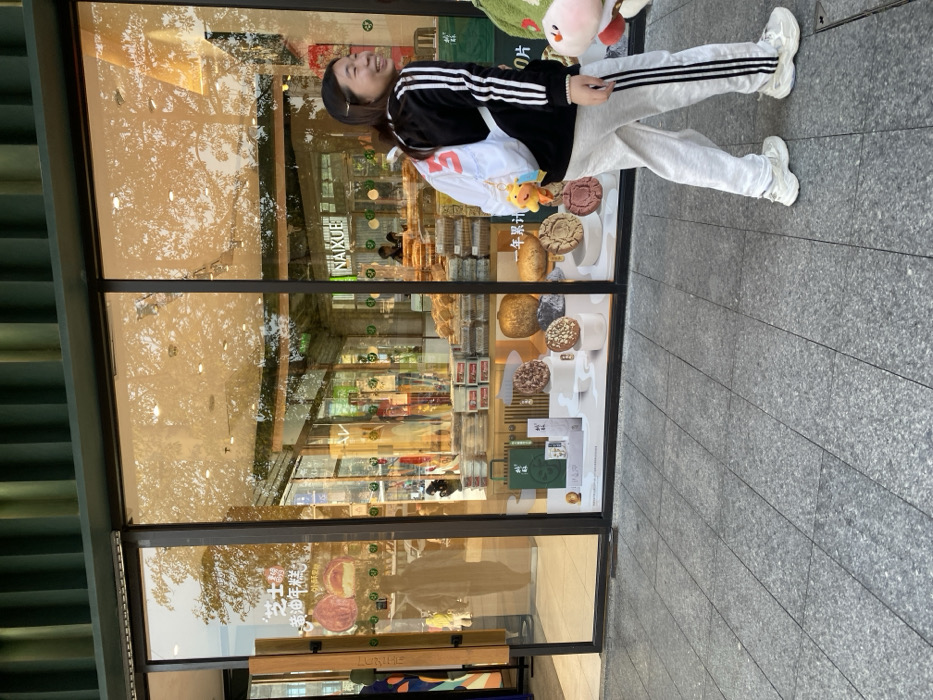 - "A young East Asian female is depicted walking from left to right on a grey granite-tiled sidewalk outside a retail establishment in Tianhe District, China" by FM-y52303, licensed under CC BY 4.0