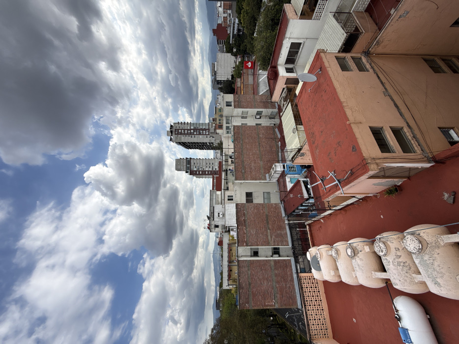 - "The image displays a detailed, high-angle rooftop view of a dense urban landscape in Mexico City, Mexico, under a sky with a mix of white and dark grey clouds and patches of blue" by FM-qqK3l1, licensed under CC BY 4.0