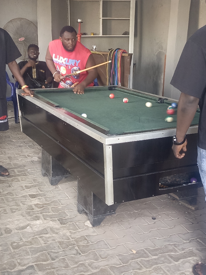 The image captures an indoor recreational scene in Lafia, Nigeria