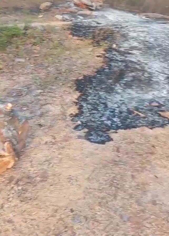 wooded area with a tree stump and a patch of burned ground. The ground is covered in dry leaves and wood shavings. The camera moves around the area, showing the extent of the burned patch. There are no people visible in the video.