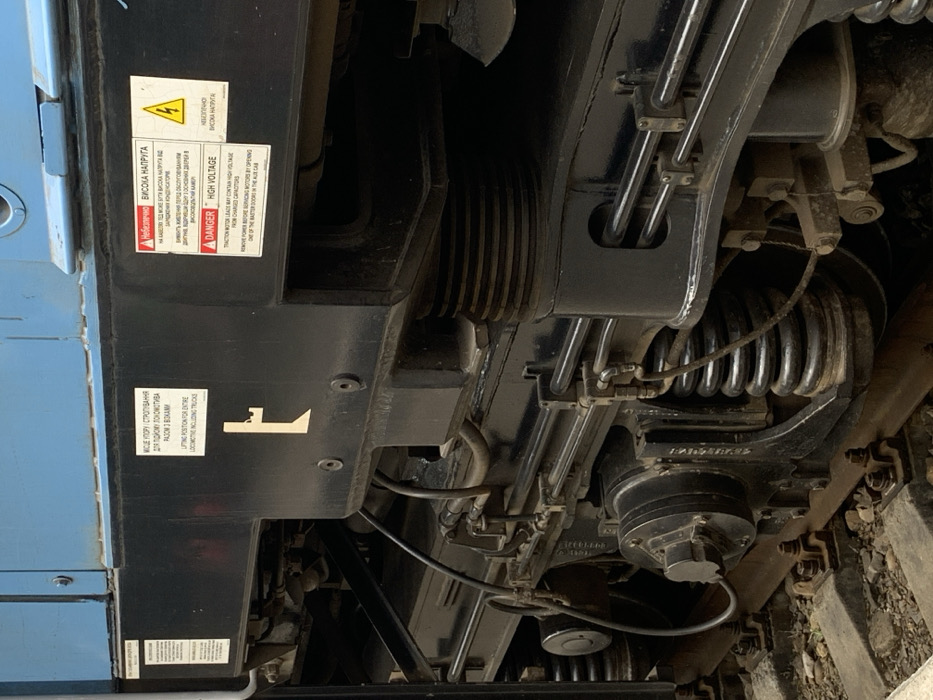 - "The image captures a detailed, close-up view of the lower section of a stationary blue and black train or locomotive, specifically focusing on its bogie and undercarriage, positioned on railway tracks in Yaremche, Ukraine" by FM-BI1Cp2, licensed under CC BY 4.0