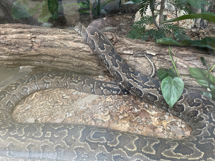 - "A large, patterned snake is depicted resting within an exhibit at the Parc Zoologique et Botanique de Mulhouse in Mulhouse, France" by FM-rLGAz2, licensed under CC BY 4.0