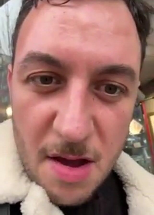 A man wearing a white and black jacket is looking directly into the camera and talking about fortune cookies. He is outside, on the street, on an overcast day.