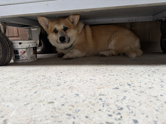 - "The scene, located in Enghien, Belgium, depicts a fawn and white Pembroke Welsh Corgi lying on a light grey concrete surface" by FM-xygyB2, licensed under CC BY 4.0